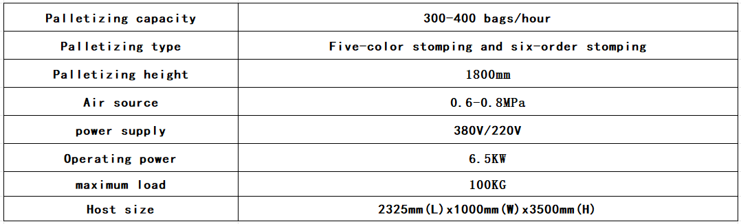 Efficiency: Column palletizers utilize automated technology to efficiently stack goods, significantly improving work efficiency. Compared to manual stacking, column palletizers can operate continuously and uninterrupted, unaffected by factors such as fatigue and rest.