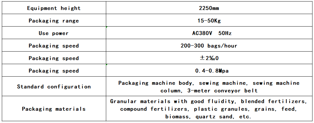 This product consists of a sack breaker, a bag entrainment device, a filling device, a weighing control system, a bag sewing machine, and a conveyor.